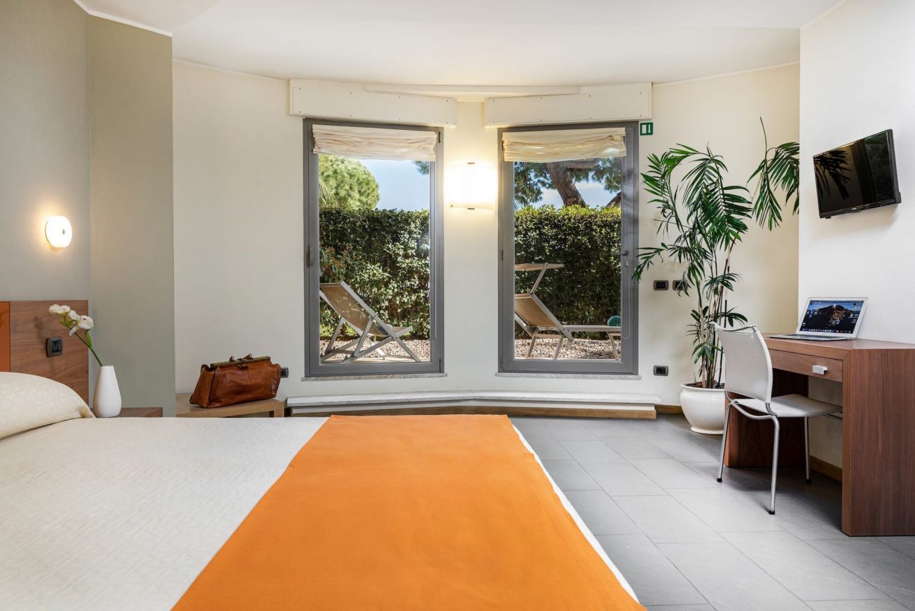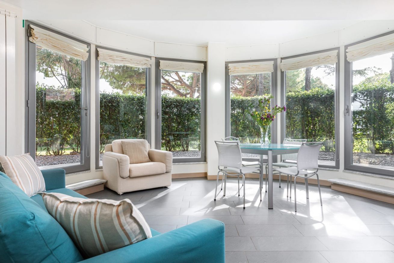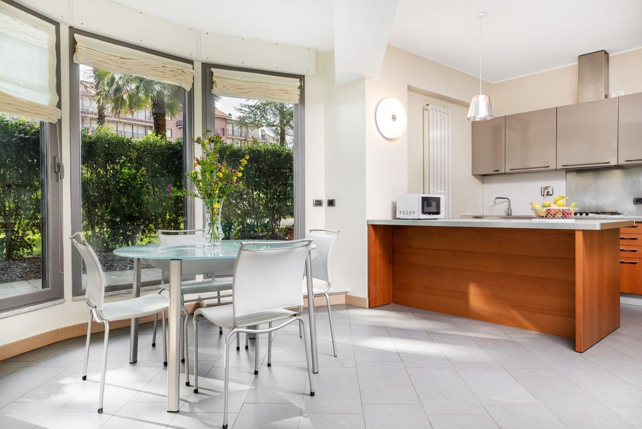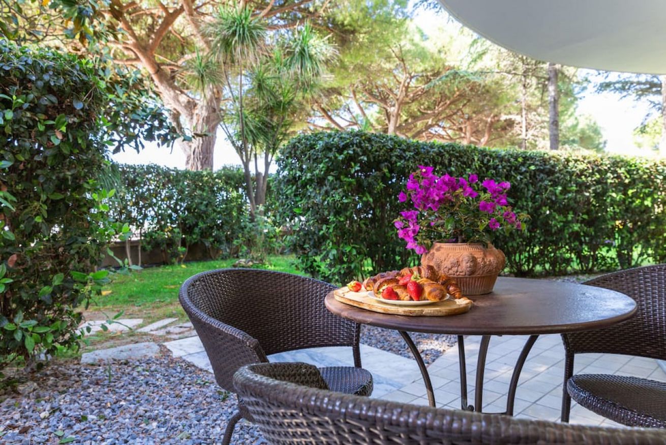 APPARTAMENTO SITUATO A PIANO GIARDINO CON UNA CAMERA A LETTO, UN BAGNO, SALA CON DIVANO LETTO, CUCINA E PATIO ESTERNO PRIVATO