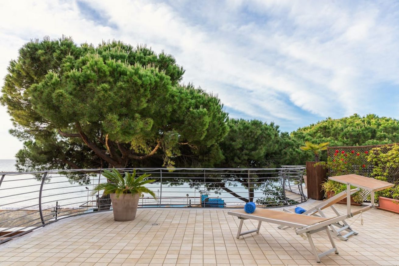 APPARTAMENTO SITUATO AL SECONDO PIANO CON UNA CAMERA, DUE BAGNI, SALA CON DIVANO LETTO, CUCINA E TERRAZZO VISTA MARE